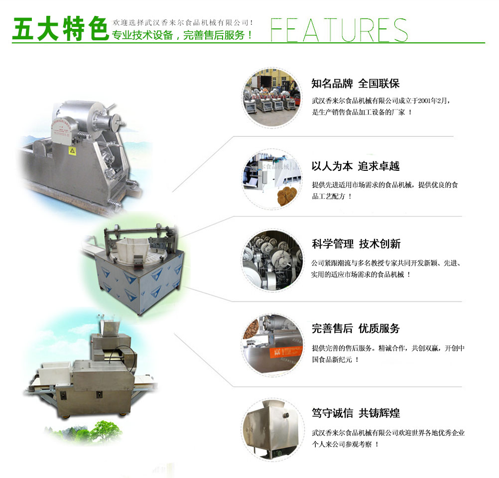 武漢香來爾食品機(jī)械有限公司成立于2001年2月,是生產(chǎn)銷售休閑食品加工設(shè)備的廠家。公司緊跟市場潮流與華工、華農(nóng)多名共同開發(fā)新穎、實(shí)用的適應(yīng)市場需求的食品機(jī)械,自有車、刨、鉆、銑、剪板、折彎等先l進(jìn)機(jī)床100多臺 套。7年誠信通會員,產(chǎn)品出口拉美、非洲、東南亞、歐洲等很多國家和地區(qū),國內(nèi)很多食品企業(yè)都是我們的合作伙伴。目前公司專門設(shè)立一個的售后 服務(wù)班子,在公司逐步發(fā)展強(qiáng)大的過程中,一直堅持售后服務(wù)的同步發(fā)展,精良的食品設(shè)...